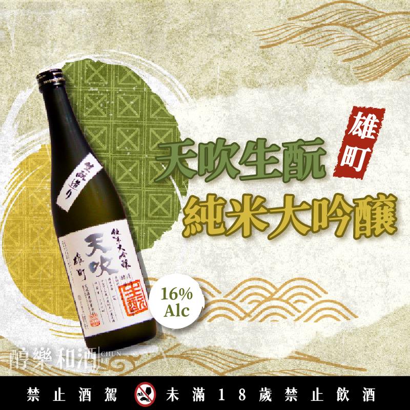 以最傳統的生酛釀造法配合極上的酒米「雄町」,並使用花酵母精釀,正是所謂「天吹流」獨一無二 的釀造法。雄町米提煉出紮實的酸度可與各式料理結合,特別的是,此款純米大吟釀亦可溫熱飲用。 厚實濃郁、酸度迷人的口感,搭配米飯、乳酸與山茶花的香氣,一品難忘