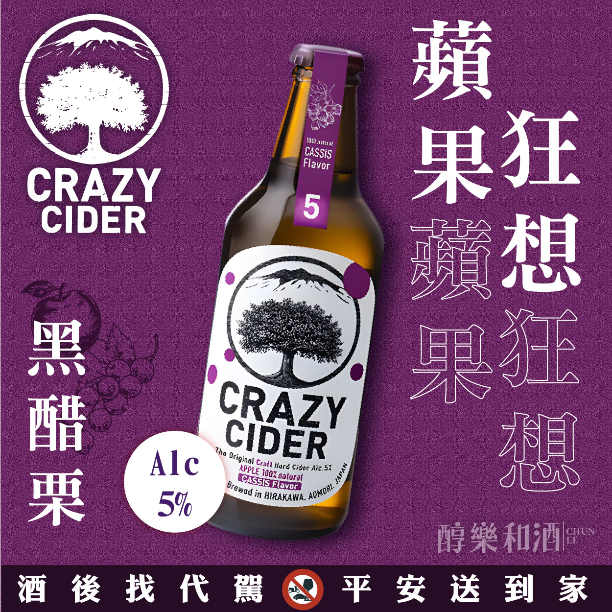 嚴選高品質青森縣產蘋果,並奢侈的使用青森縣產黑醋栗共同釀造。 清爽的甜味與明亮的酸度取得絕佳平衡,使整體風味既有深度又不失輕快, 尾韻展現出蘋果酒少見的多層次芳香與俐落。